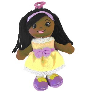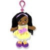 Ready for excitement, and adventure, let Kaylie become your child's new best friend. Our 6-Inch Kaylie Backpack Clip is the perfect size for small hands and features beautiful black hair and dark brown eyes. Her embroidered facial features make this doll safe for your little ones, with no small parts coming loose. Kaylie comes dressed in an adorable sleeveless skater dress in yellow accented with white eyelet lace trim and a purple bow tied around the waist. Her purple headband, striped tights in purple, yellow, and white, and her yellow bow accented shoes complete her unique look. As soft as she is cute, she is ready to be clipped on and join in on the fun where ever your little one may go. With a wide cast of exclusive characters available from Playtime by Eimmie and Sharewood Forest Friends, our goal is to inspire your children to develop their imagination and cultivate their creativity with play. Clothing is not removable. Spot clean only.* Plush is 6 inches tall with a 2-inch plastic clip* Features embroidered nose, mouth, and eyes * Conveniently sized to bring along anywhere they go* 13 styles to choose from or collect them all* Great for imaginative play at home or away* Inspiring minds with toys that empower imagination