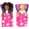 Sleep under the Milky way with our Camping Playtime pack that makes the perfect home base for your next camping trip. The doll-sized tent has lots of fun features like ties to keep the door flaps open, and it is large enough for two dolls to sleep inside comfortably. The cute and cozy matching doll-sized sleeping bags are great to use in the tent or outside to let your doll sleep under the stars Camping out with your doll is so much fun with this set! Camp out with a friend. This 5-piece set comes with a pink tent with tie-back panel doors, two tent poles, and two matching doll sleeping bags. Also included is a color and mail postcard activity allowing your child to share with someone special, the fun they're having while playing with this adorable set from Playtime by Eimmie.* Set designed to fit popular 18-inch doll brands* Engage your child with real imaginative play* Cute pink and white daisy patterned tent and bags* Outfit only- Doll not included with purchase* Hook and loop closure on outfit for easy changes* Inspiring minds with toys that empower imagination