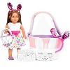 The Easter egg hunt is on! Playtime By Eimmie's Easter Playtime Pack comes with everything your little one needs to make this holiday amazing. Not only can your little one dress up her doll, but she can also match with her. This 5 piece set includes: an adorable doll-sized Easter dress decorated in pastel-colored Easter eggs, matching headbands, and plush Easter Bunny baskets for both your child and their doll. Also included is a color and mail postcard activity allowing your child to share with someone special, the fun they're having while playing with this adorable set from Playtime by Eimmie. The child bunny basket measures 8 inches deep, and 10" in diameter, large enough to pack in all of your basket stuffers from eggs, candy, toys, and any extra goodies the Easter Bunny brings! It’s a basket and a buddy! Your child’s new basket will double as one of their favorite easter plush toys. They will love showing it off to friends, using it as a tote, or to store their precious belongings long after the treats are gone!