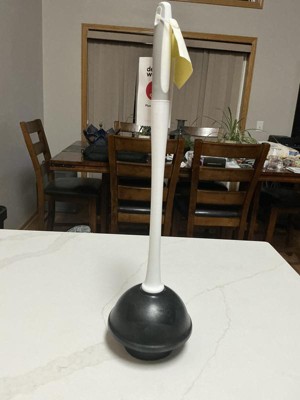 Seems like a pretty reliable plunger. The bottom part is a really good size and shape for creating that suction you need when there’s a clog. The handle is also nice and long, so you don’t have to get too close to the bowl while you’re putting that work in. It’s compact, so it fits well behind a toilet or under a sink.
