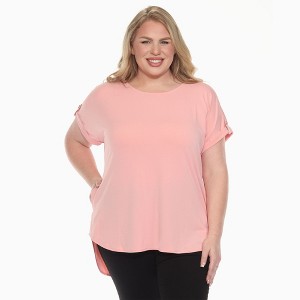 Product Name: Plus Size Folded Short Sleeve Solid Top Pink 2X -White Mark