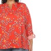 Product Name: Plus Size Paisley Button Front Tunic Top Red 3X -White Mark