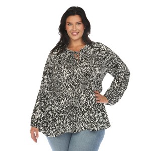 Product Name: Plus Size Printed Peasant Blouse Black White 2X -White Mark