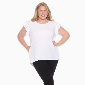 Product Name: Plus Size Ruffled Sleeve Solid Top White 2X -White Mark