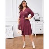 Plus Size Women's Ribbed Knit Sweater Dress Knee-Length Button Front