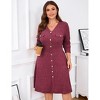 Plus Size Women's Ribbed Knit Sweater Dress Knee-Length Button Front