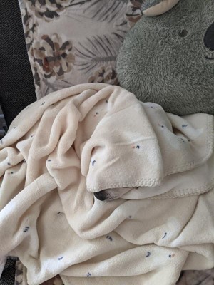 Keep your baby warm and cuddly with this Birds Plush Blanket from cloud island™. Crafted from 100% recycled polyester microplush fabric, this printed blanket feels soft against their skin while ensuring they stay warm while indoors, as well as during stroller rides or road trips. Adorned with allover tiny bird prints in white on a cream background with red beaks and blue tails, it makes a cute addition to your baby's nursery decor.