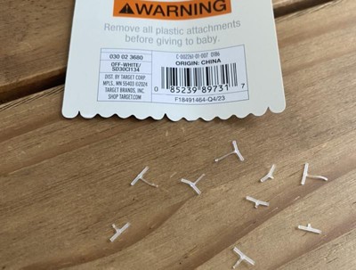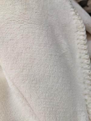 Lovely, soft cream blanket. Sheds a bit around the border. Lots of clear plastic barbs. Still searching for the last one.
