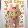 Show off your style with this crop tee featuring plush toy, "too cute to handle", flowers and hearts as side elements on white. Crafted for comfort and durability, it's the perfect addition to any wardrobe.
