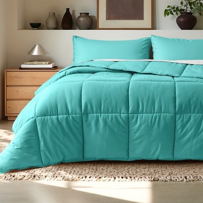 Pointehaven 410 Thread Count Aqua 100% Cotton Solid Sateen 3 pc Duvet Set, Full/Queen
