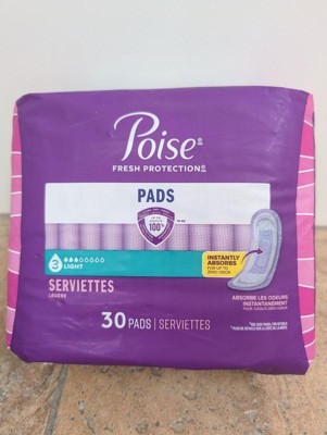 POISE INCONTINENCE PADS: 24 incontinence and postpartum bladder leak pads, 3 Drop Light Absorbency, long length (24 pads total)