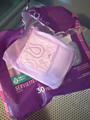 A: Each package contains a total of 24 pads designed for light absorbency.