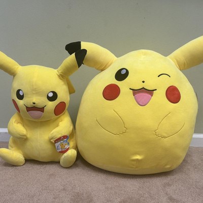 This is super cute and well made. You can’t go wrong and you’ll love it. It’s not as soft as I thought it would be based on the reviews I read. I had trouble deciding between this one and the pikachu squishmallow. This one’s size advertised it’s a few inches bigger than the squishmallow version but as you can see from the photo, it’s not. I was looking for something bigger and softer as a gift so the squishmallow was a better fit for what I was looking for. Both are really cute and great quality but wanted to write this review and provide a photo in hopes it would help others make a decision if size and squish were variables in your decision making process. It’s not always an option to order both and they weren’t in the store near me to check out in advance. Happy shopping.