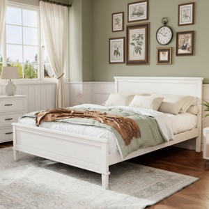Polibi Mid-Century Modern Solid Wood Platform Bed, Full, White