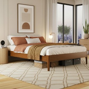 Polibi Solid Bamboo Platform Bed Frame with Metal Center Support & Underbed Storage, Full, Brown