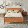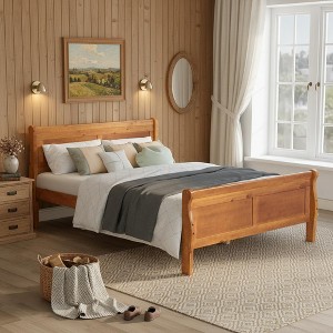 Polibi Solid Wood Platform Bed with Panel Headboard, Full, Oak