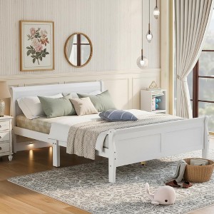Polibi Solid Wood Platform Bed with Panel Headboard, Full, White