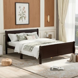 Polibi Solid Wood Platform Bed with Panel Headboard, Full, Espresso