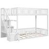 Polibi Twin Over Twin Low Bunk Bed with Fence-Style Rails and Built-In Storage Staircase