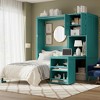 Discover the ultimate solution for compact living with the Polibi Twin Size Rotating Murphy Bed, thoughtfully crafted for multifunctional spaces. This all-in-one wall bed seamlessly transforms from a twin bed into a full bookshelf with a simple 180° rotation—ideal for guest rooms, small bedrooms, home offices, or studio apartments. Complete with a pull-out desk, top storage cabinet, and open shelves, this space-saving design is made from durable solid wood and finished in vibrant, modern colors like teal and white, offering both form and function in a single, streamlined unit.