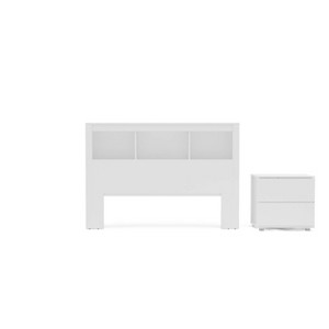 Add extra storage space and style to your bedroom with the Madison 2 Piece Bedroom Set from Polifurniture. This set includes 1 headboard and 1 nightstand, and is available in multiple finishes and sizes. The bookcase headboard has 3 open shelves to keep all your personal belongings organized or to use them to display your favorite decorative pieces. The nightstand includes 2 drawers for concealed storage. Both pieces are constructed from engineered wood with a durable melamine finish to protect against every day use. Solve your bedroom organizational needs while boasting a classic modern design. with the Madison 2 Piece Set. Pairs perfectly with dressers and chests from Polifurniture's Madison collection.