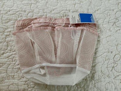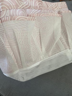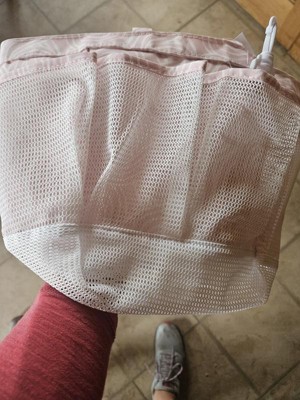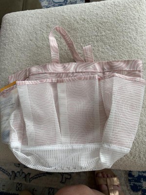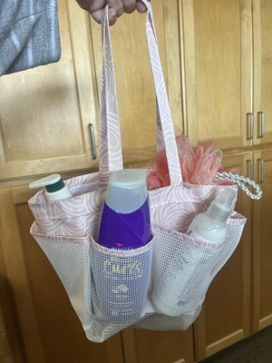 This shower caryall is versatile and lightweight. It is a pale pink with a mesh netting pocket for quick drying. It will easily carry five favorite products in the outer pockets. It also has a clip attachment on the outside. The inner area has quite a sizeable capacity for your favorite shampoos or shower shoes...