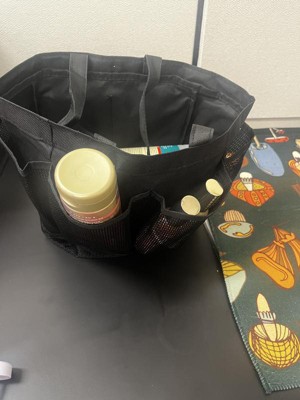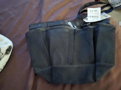 Polyester Mesh Shower Caddy from Room Essentials is a good bag. Item is strong enough to carry bathroom items with ease.The only issue i have with shower caddy is it doesnt sit flat or balanced. My items flopped around and fell over.