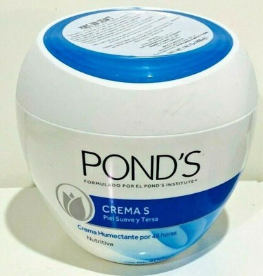 - POND’S CREMA S – This rich, creamy facial moisturizer deeply nourishes and comforts dry to very dry skin, locking in 24 hour hydration for skin that feels soft, smooth, and radiant from morning to night