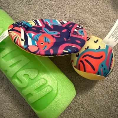 I was a little underwhelmed with this purchase. I felt like I was going to get more substantial toys just based on how the product was listed. It really comes with two squishy balls and a water blaster and I’m not even sure what the last toy is for … Maybe a water frisbee? It is cute how it comes in a bag but not worth it in my opinion.