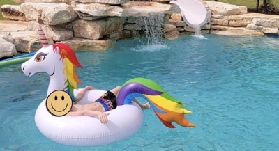 Love this fun and colorful unicorn for summer. The unicorn pool float is the perfect size for my kids and for me! The float is vibrant in color. The float will stay inflated for up to a week! We love hanging out in the pool with this float.