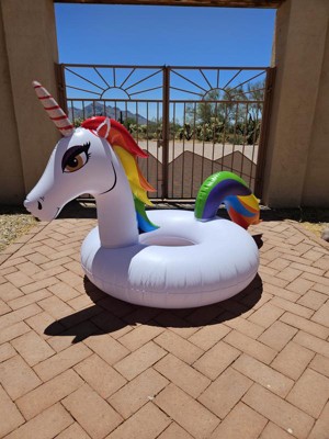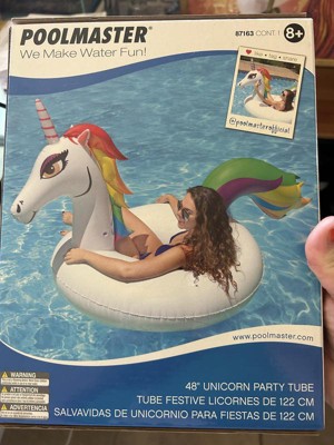 reeived my Poolmaster 48" Party Tube - Unicorn we absolutely love it!! we couldnt wait to get it out of the box .. only took a minute or two to blow it up and we were using it in the pool!! Unicorn float is 4-feet in diameter, and over 3-feet tall has a colorful mane and tail .. we were all able to enjoy it.. this is such a great product ,, i would highly recommend it