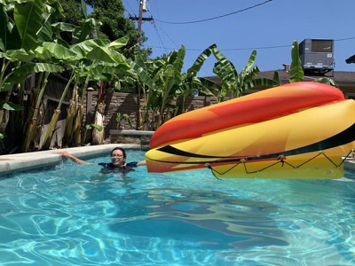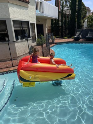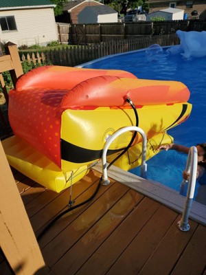What a fun way to add excitement to the pool this summer! Super easy to inflate and get set up on the deck for hours of fun in the sun. Make sure to keep the slide area wet or you will stick and it does get a little hot if its sitting in direct sunlight.
