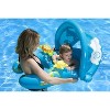 The Poolmaster Mommy and Me Baby Float With Sun Shade is designed for pre-swimmers getting comfortable with the water and to help teach baby how to swim. With mom or any adult right by their side, baby can feel confident in their new water environment. The Mommy and Me Inflatable Pool Rider features split section for mom or dad to float with baby and two inflatable pool toys to keep baby amused while gently floating along. The comfortable drop seat accommodates all size babies from 8 to 24 months. Mommy, or any adult, will be able to snuggle right into the half-tube opening, resting the forearms while steering the float. Also check out our Mommy and Us dual baby pool float, great for twin babies.