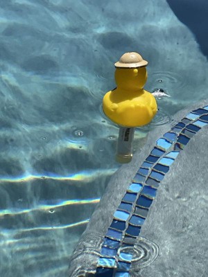 Poolmaster Swimming Pool and Spa Thermometer - Safari Duck has a super cute design with a toy duck on top for floating. The thermometer has big numbers that I can clearly see and I like this fact. Nice thermometer!