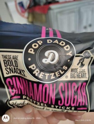 Pop Daddy Pretzels Cinnamon Sugar Pretzel Sticks. Goodness and crunch, hand-seasoned in small batches. How do we fit so much flavor in one bag? At Pop Daddy, we're all about crave-worthy, crunchy snacks that pack a punch in the flavor department. We don't shy away from zesty, different, and downright tasty. So be it popcorn or pretzels, you can count on us for a snacking experience that seriously satisfies you.