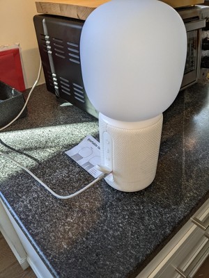 For $15 dollars on sale, this portable light and speaker is awesome! It's no Sonos speaker mind you, but still excellent. The speaker is a warm white and the light cover is a white plastic that doesn't look cheap for some odd reason. I like that it's portable so I could bring it outside on a good weather day. The light can be set to warm, cool, or RGB color. Highly recommend.