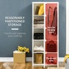 - SAY GOODBYE TO CHAOS: With six cube compartments and a clothes hanging area, the wardrobe cabinet will effectively organize your clothes, shoes, and bedding. The top can be used for an empty suitcase or duffle bag. The cabinet depth is 19.75", more profound than other ordinary wardrobes, offering more storage space.