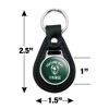 - QUALITY MATERIAL: Our durable round keychain is crafted from leather with a glossy resin-topped emblem featured design shown on one side. Approximately 1.5" (3.8cm) x 2.5" (6.4cm) in overall size, emblem is 1" (2.5cm)..