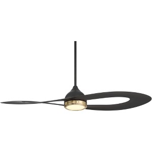 Gentle and graceful curves are here to impress with the Obi collection of contemporary modern ceiling fans from the Possini Euro Design® brand. Two molded ABS blades in matte black finish swoop around the motor in wide curves with open spaces to create the comfortable sensation of air circulation. The matching matte black finish motor features a soft brass finish accent for a splash of metallic color. The Obi collection is completed by an integrated CCT LED module, and all functions can be operated with the included hand-held remote control. The Obi collection is damp location rated for both indoor and covered outdoor use.
