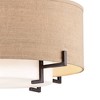 This pendant chandelier features a geometric composition of bronze finish angles paired with a wide drum shade. The look is ideal for dining rooms or seating areas, and has a soft contemporary feel from the burlap fabric shade. Inside the shade is a concentric circular diffuser that softens the light.