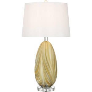 Possini Euro Design Pablo 27" Tall Modern 3-Way Table Lamp Yellow Vortex Finish Art Glass Single White Shade Living Room Bedroom Bedside Nightstand