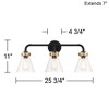Possini Euro Design Trilogy Modern Wall Light Black and Brass Hardwire 25 3/4" 3-Light Fixture Seedy Glass for Bedroom Bathroom