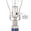 - Blue swirl art glass body is handcrafted, so slight color and pattern variations may occur. Metal accents. Tapered white fabric lamp shade. 8-foot long clear cord and plug.