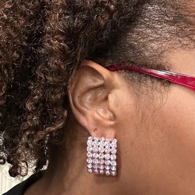 Jazz up your everyday outfits with these 5-Row Post Earrings from A New Day™. These earrings features shiny crystals beautifully arranged in a 5-row design on a metal base for a glam touch. Designed with postback closures for a snug fit, these hypoallergenic earrings suit most skin types.