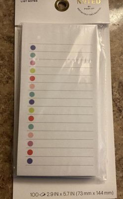 Noted by Post-it White Lined Notes with Colored Dots, Sticky Notes: 100 Sheets, 2.9x5.7", To-Do & Grocery List
