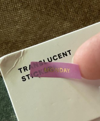 [This review was collected as part of a promotion.] The Post-i It translucent stickers are a great addition to anyone who uses a calender or planner. The day of the week stickers are great to use when I need a bright reminder. The longer pieces can highlight information, or be used to write on for an important reminder. With 96 stickers this item is a good value for the cost, and will keep me from missing appointments and important information. Thank you Post-It and 3M for a chance to review this product.