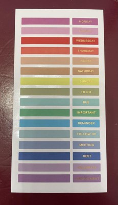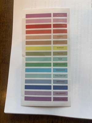 [This review was collected as part of a promotion.] I’ve been using these 3M planner stickers for a couple weeks now and really like them. The colors are bright and easy to see, and I like that they include things like “Reminder,” “Follow Up,” and “Rest”—not just work stuff, but personal too. They stick well but can be moved if needed, which is a big plus. Only downside is the yellow is a little light to read, but overall they’ve made my planner more organized and honestly a little more fun to use.