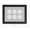 Everything Is in the Box Matte Black real wood frame at 17.5 x 13.8 inches, Black beveled mat with 6 circular 3-inch openings in a 3x2 layout, foam board, and ready-to-hang hardware.