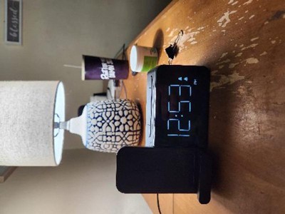 Power Stand Alarm Table Clock Black - Capello: Wireless Charger, USB Port, Modern Design, for Bedroom