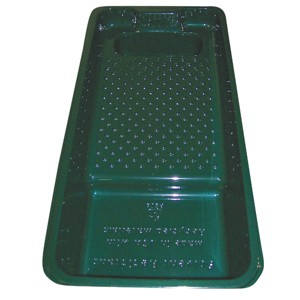A convenient sturdy plastic tray for trimming or small paint projects. Fits up to 4 In. mini rollers. For use with paints, stains, and solvents. Holds up to a quart. Made from 100% recycled plastic.